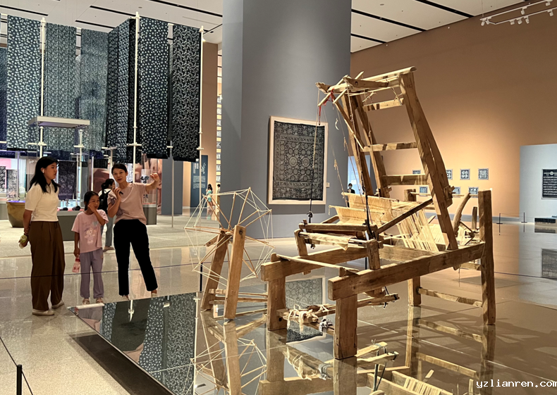 此次展览通过“终朝采蓝”“斑斓万象”“五彩彰施”“生生不息”四个板块,展现蓝印花布的历史溯源、文化审美、多样性语境、创造性转化与创新性发展。带领观众感受民间传统工艺之美。(刘姝言 摄影报道)
